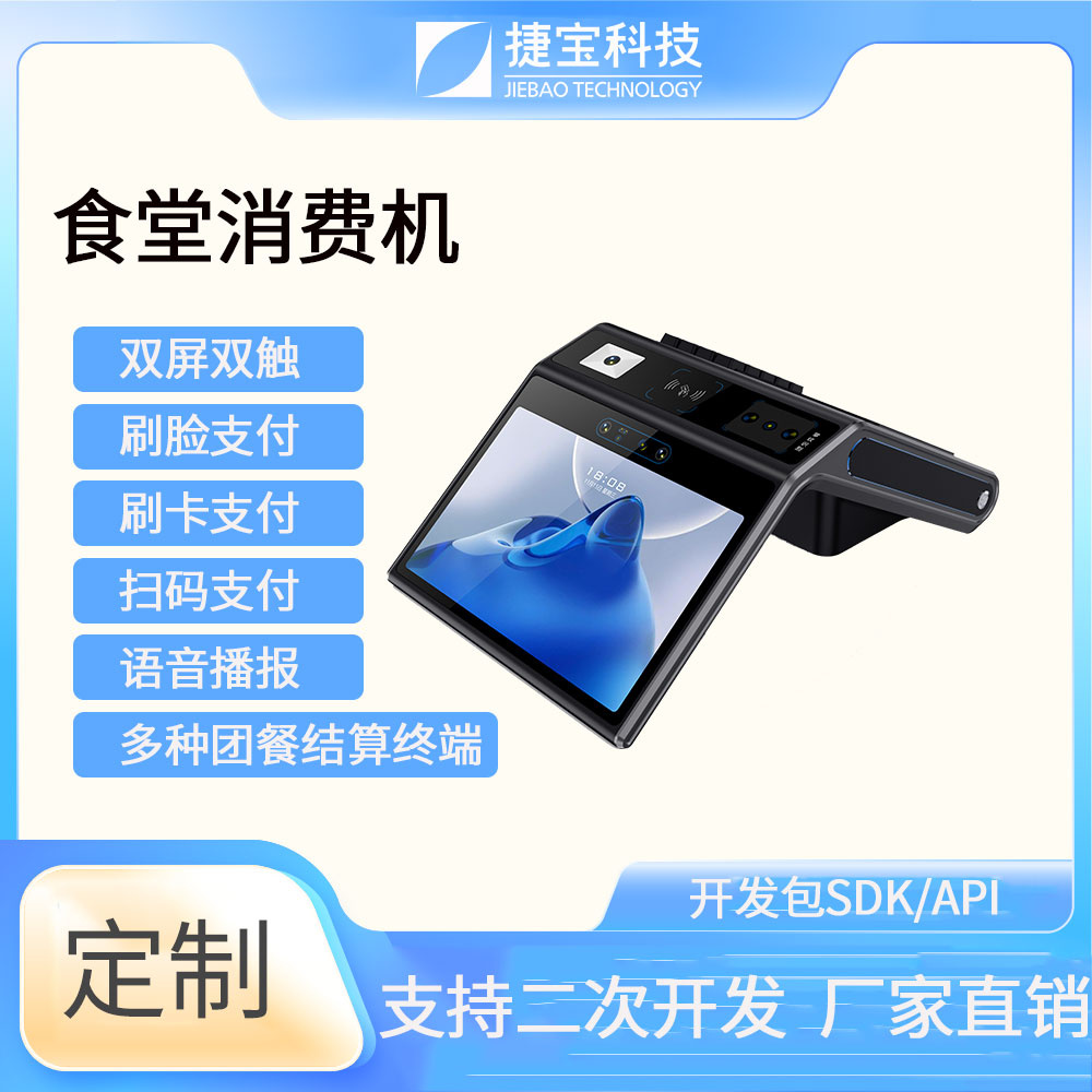 捷寶科技是國內最早推出基于Android系統智能硬件的廠家之一。產品形態涵蓋手持、臺式、立式、掛式、柜式、單屏、雙屏;功能上圍繞NFC識別、條碼識別、生物識別,AI識別等技術大類,開發出可識別CPU卡、M1卡、射頻卡、二代身份證、社保卡、一維條碼掃描、掃碼支付、指紋識別、人臉識別、掌靜脈識別、虹膜識別、AI菜品識別、智能語音識別等功能的各類產品。